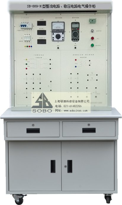 碩博SB-889-H型整流電路、穩壓電路電氣操作柜由實訓桌和實訓臺兩部份組成。