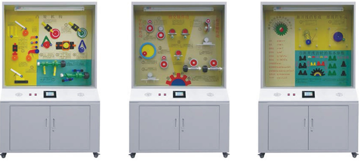 《機械原理》示教陳列柜是根據大、中專院校、技校、職業學校的機械原理教學大綱設計的電化教學設備。演示形象逼真,運行可靠,制作工藝美觀,使用本陳列柜可提高教學效果,節約學時是一套現代化機械課程教學應用實驗室設備。