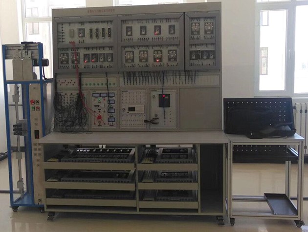 1、模型電梯設4層4站,由模擬井道架、轎廂、對重、曳引機、電梯門、門電機、各層站外呼盒及主要安全裝置組成,固定設置在實驗臺側面。模擬井道架內需配置用于檢測轎廂位置的樓層感應器、平層感應器(與實際電梯相似)等,其接線端子引至模擬井道架的插接孔上。井道架采用金屬材料為主體支架,有機玻璃封閉。★設備必須采用臺式結構,設置活動式抽屜電氣板,每層抽屜板均設置有公共接線板(總線型接線方式,總線連接點數必須達到120點以上),抽屜電氣板之間采用工業坦克鏈連接,公共抽屜板連線采用真實電梯多芯隨行電纜。