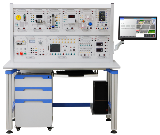 主要包含:實(shí)驗(yàn)桌、實(shí)驗(yàn)臺、電壓源/電流源模塊、PLC模塊、觸摸屏模塊、變頻器模塊、電氣實(shí)操器件、虛實(shí)一體接口模塊、智能電路診斷模塊、自控交通燈系統(tǒng)實(shí)驗(yàn)?zāi)K、自動沖壓機(jī)系統(tǒng)實(shí)驗(yàn)?zāi)K、自動售貨機(jī)系統(tǒng)實(shí)驗(yàn)?zāi)K、自控成型系統(tǒng)實(shí)驗(yàn)?zāi)K、電梯自動控制系統(tǒng)、自動洗衣機(jī)系統(tǒng)實(shí)驗(yàn)?zāi)K、機(jī)械手控制、五相步進(jìn)電機(jī)實(shí)驗(yàn)?zāi)K、實(shí)訓(xùn)電機(jī)等。