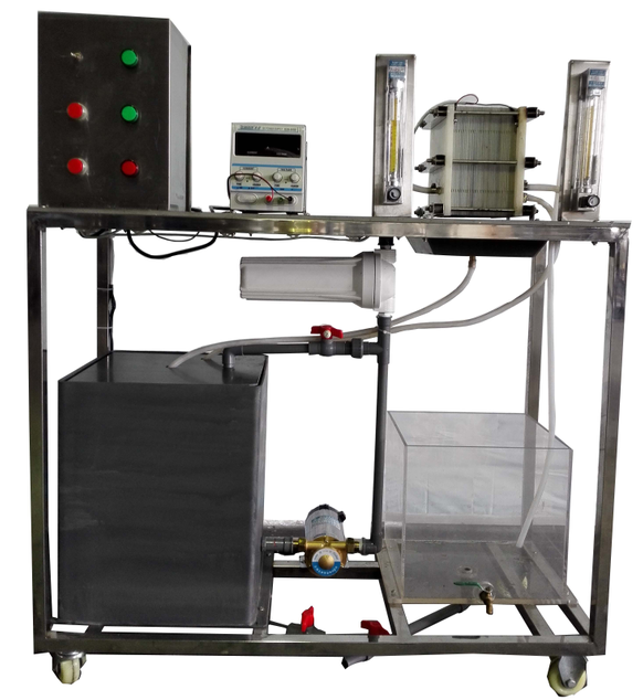 有機玻璃外箱體、電滲析器、直流穩壓電源、配水箱、進水泵、流量計、壓力表、不銹鋼框架、控制屏。