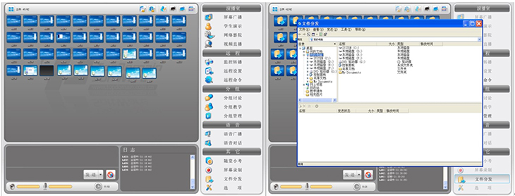 ⑥具有分屏廣播、文件分發(fā)、作業(yè)提交、網(wǎng)絡(luò)考場、遠程輔導、遠程監(jiān)控、網(wǎng)絡(luò)影院、語音廣播、語音對話、錄制與回放功能。
