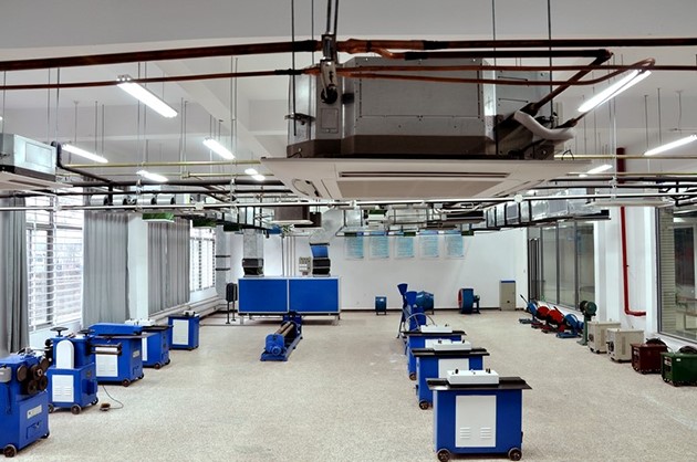 3.組合式空調(diào)機(jī)組、新風(fēng)機(jī)組、風(fēng)機(jī)盤管、冷卻塔、風(fēng)機(jī)、消聲器、多聯(lián)機(jī)、滾剪機(jī)、咬口機(jī)、卷圓機(jī)、合縫機(jī)等主要設(shè)備,組成一次回風(fēng)式空調(diào)系統(tǒng)、新風(fēng)加風(fēng)機(jī)盤管空調(diào)系統(tǒng)、排風(fēng)系統(tǒng)、多聯(lián)機(jī)空調(diào)系統(tǒng)等四個系統(tǒng),可以承擔(dān)組合式空調(diào)機(jī)組安裝、冷卻塔安裝、新風(fēng)機(jī)組安裝、風(fēng)機(jī)盤管安裝、風(fēng)機(jī)安裝、多聯(lián)機(jī)安裝、風(fēng)口安裝、風(fēng)管制作等8個實(shí)訓(xùn)項(xiàng)目。