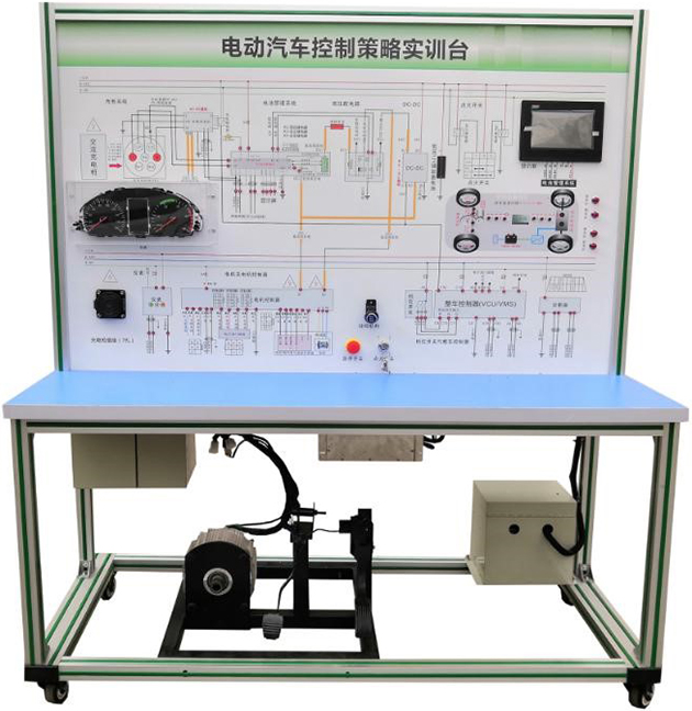 2.安裝純電動車真實器件,包含電池及管理系統(tǒng)、電機及控制系統(tǒng)、車載充電系統(tǒng)、整車控制器VCU及控制系統(tǒng)、電源轉(zhuǎn)換系統(tǒng)(AC-DC模塊、DC-DC模塊、DC-AC模塊)、高壓安全系統(tǒng),真實展示電動汽車控制策略系統(tǒng)的結(jié)構(gòu)原理與工作過程。