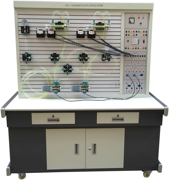 液壓實驗臺,液壓傳動實訓臺,液壓技術實驗臺,液壓實驗室設備是面向、部隊、院校、機械、汽車、船舶、醫療、航空、鋼鐵、煤礦、電力、石油、工程系的機械設計制造及其自動化、機械電子工程、采礦工程、安全工程專業開設的實驗室。液壓實驗室主要承擔的實驗課程有液壓與氣壓傳動、固定機械等。實驗室可為學生提供課程實驗、課程設計等實踐教學活動。液壓實驗臺可讓學生了解典型液壓泵和液壓閥及主要零件的材料、加工裝配工藝和維修保養知識,理解課堂上難以搞懂的某些復雜結構和空間油路問題,加深對液壓元件的感性認識,選用自己設計的液壓回路所需的液壓元件,在液壓實驗臺上組裝該順序動作回路,并驗證該順序動作回路的正確性,促進學生提高動手能力。液壓實驗臺,透明液壓PLC控制實訓裝置、液壓plc控制實驗臺,液壓傳動實驗臺,液壓實驗系統是生產和開發液壓元件與液壓系統的重要實驗設備,它也是高等工科院校普遍使用的一種實驗設備,是培養學生創新能力的平臺。液壓實驗臺,液壓傳動實驗室設備主要承擔《液壓與氣壓傳動》等課程的實驗教學任務,液壓綜合實驗臺。通過實驗助力學生加深理解和鞏固課程中所學的基本概念與理論,掌握基本常用液壓元件的特性,熟悉傳動基本回路和基本傳動系統的組成和工作原理。培養學生觀察能力和分析能力,以及掌握所學知識解決實際問題的能力。通過實訓,讓學生很好地理解和掌握液壓件結構、形狀、作用和工作原理方面的知識,掌握常用的液壓回路作用、工作原理和安裝調試使用方法,理論結合實際,提高動手能力,為將來從事與機械控制相關的設計、制造、維修等工作打下良好的基礎。