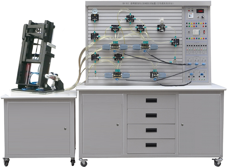 液壓與氣動技術實驗室設備、透明液壓實驗臺、氣動實驗臺、液壓元件拆裝實訓臺、透明液壓傳動演示實驗臺、液壓綜合測試實驗臺、智能液壓綜合實驗臺、機電液綜合實驗臺、雙面氣動傳動實驗臺、液壓氣動元件陳列柜、液壓挖掘機實驗臺、液壓起重機實驗臺、液壓裝載機實驗臺、透明液壓推土機實訓臺、液壓叉車控制教學實驗臺主要承擔機電類相關專業《液壓與氣動技術》課程的專業實驗任務。能提供包括液壓泵和控制元件結構拆裝與分析實驗、系統回路控制實驗、系統性能實驗和氣動技術實驗在內的不同類型的實驗。液壓與氣動實驗室所開設的實驗和液壓(或氣動)行業中的液壓系統(或氣動系統)的設計、連接調試、維護等緊密相關,通過機-電-液一體化綜合控制實驗,學生可系統地學習PLC程序設計與調試、液壓回路的設計與調試,并且通過碩博軟件使相關知識有機地結合在一起,實現對硬件的動作,從而提高各門課程的綜合應用能力。